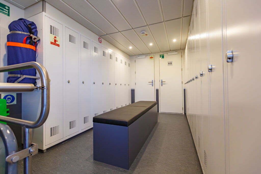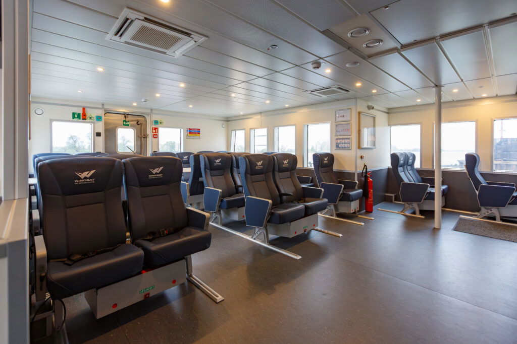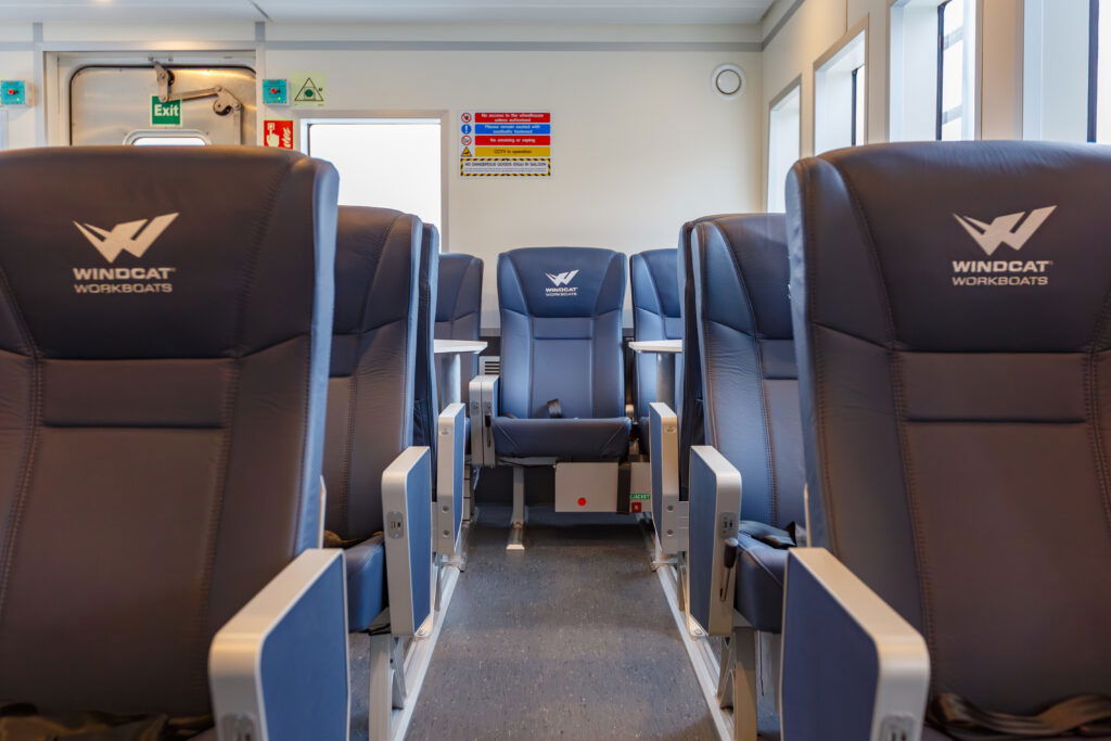 Looking at the interior of the Windcat 59, to a ”layman” it looks like a ferry. However, nothing could be further from the truth.
