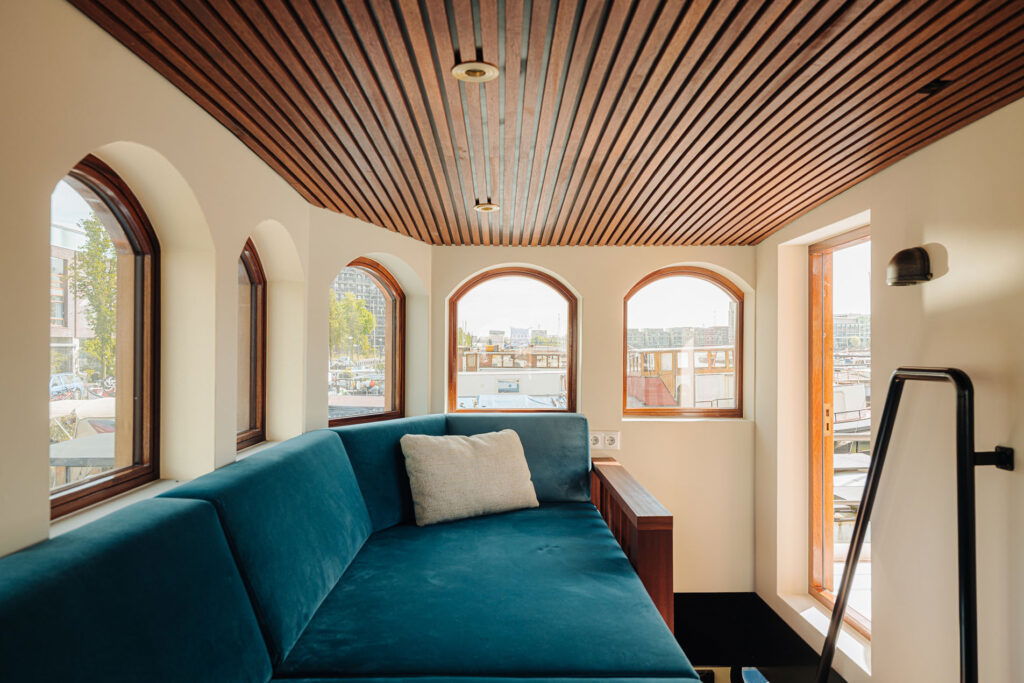 Aan de Borneokade ligt nu een droom van een schip: de Bolsward. Gebouwd op de basis van een bestaand casco, maar volledig opnieuw ontworpen en verbouwd tot een stijlvolle woonboot.