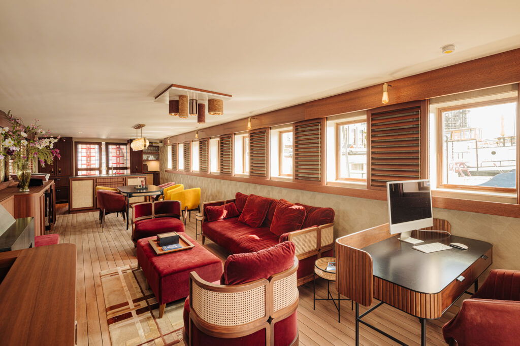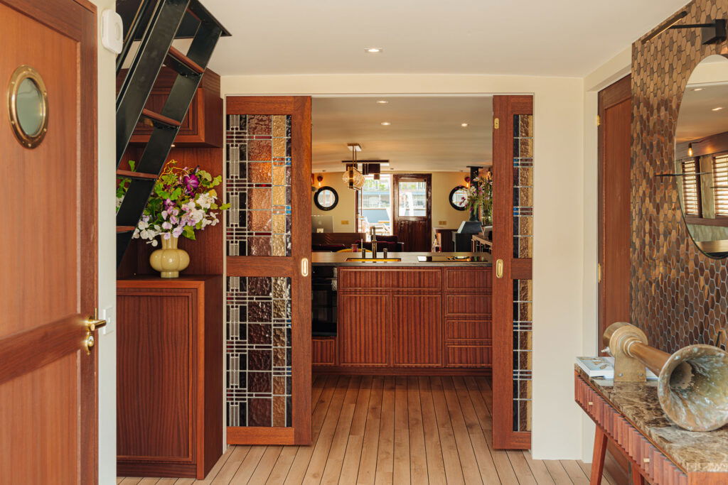 Het ontwerp is geïnspireerd op het originele tramschip Bolsward, dat vroeger passagiers vervoerde tussen Friesland en Amsterdam. Die rijke historie leeft voort in het karakter en de uitstraling van dit bijzondere schip.