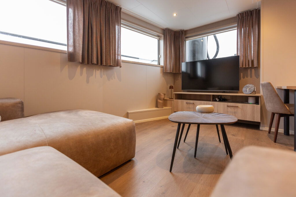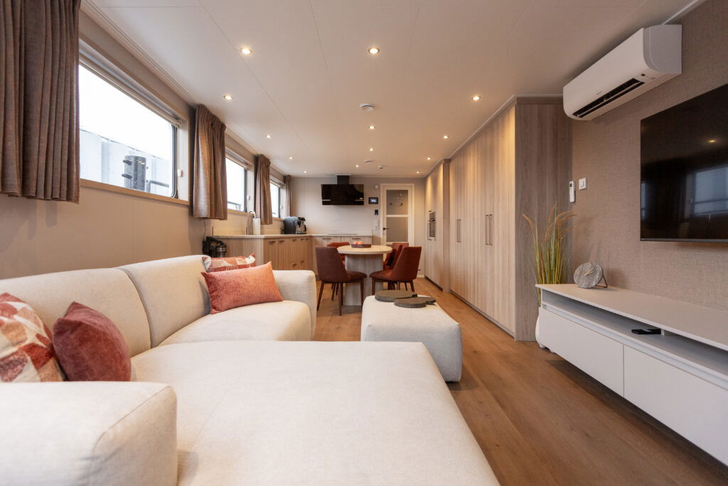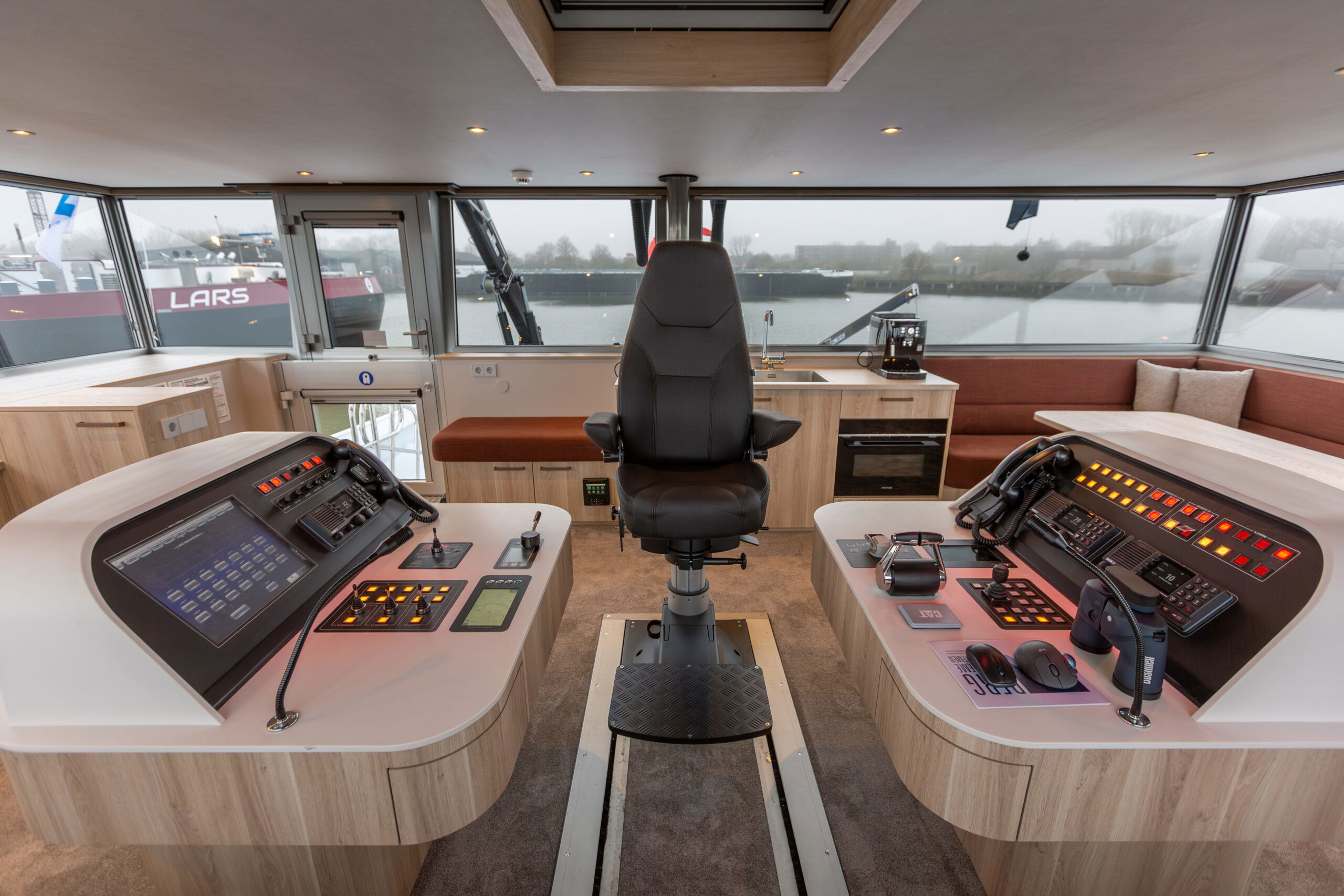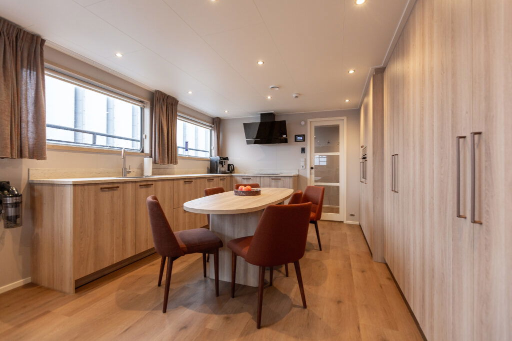 In het interieur zie je dat de kleurstijlen zich perfect laten doorvoeren, van stuurhuis naar woonhuis en het bewijst dat een rustig interieur niet saai hoeft te zijn.