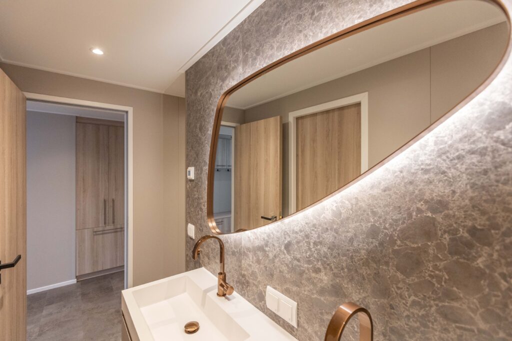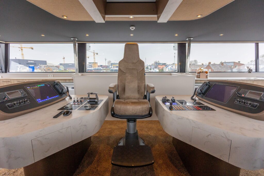 Bij binnenkomst ervaar je direct ruimte, rust en stijl. Het lichte interieur vormt een harmonisch geheel met de warme bronzen details en creëert een luxe, moderne sfeer. Voor de bemanning zijn comfortabele en functionele slaapruimtes gerealiseerd, terwijl er tegelijkertijd voldoende plekken zijn om je even terug te trekken en tot rust te komen.